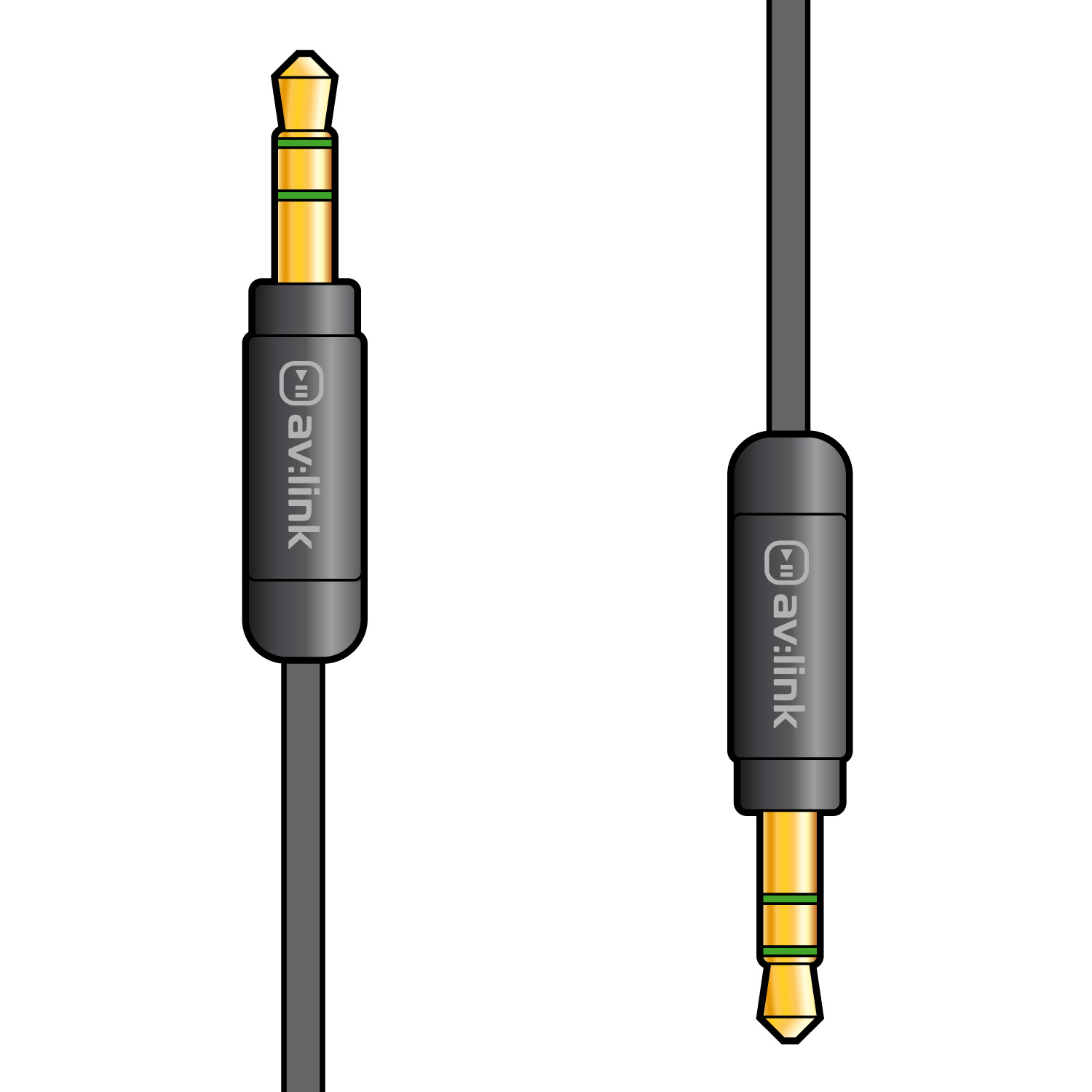 0.5m length, 3.5mm stereo plug to 3.5mm stereo plug lead suitable for audio signal connection, with slimline metal body suitable for connecting mobile devices, personal audio players and aux inputs.